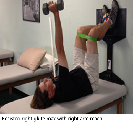resisted right glute max right arm reach